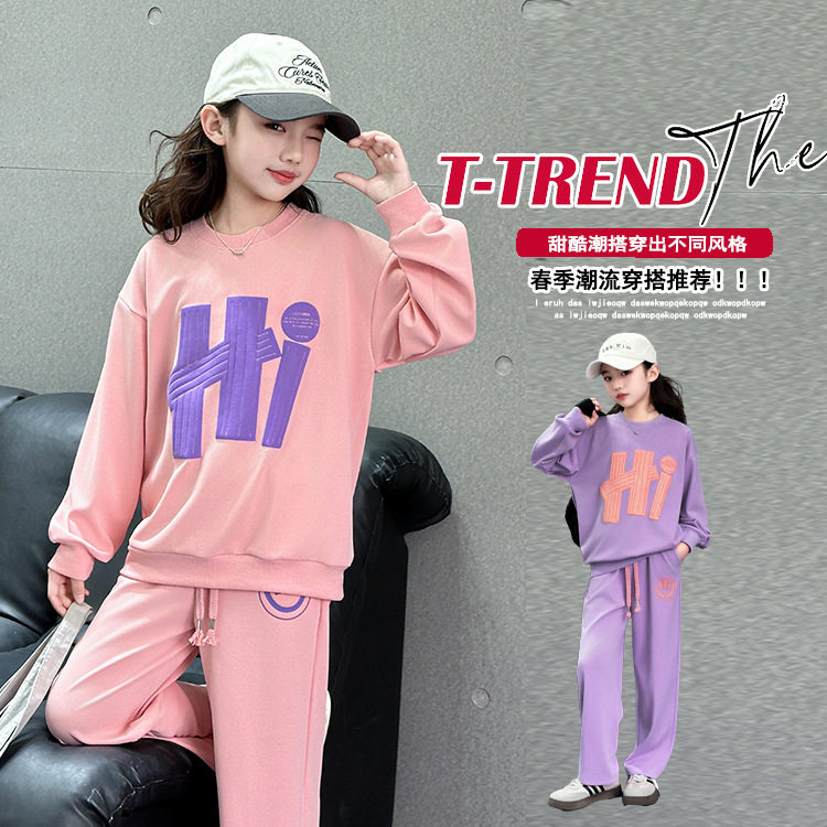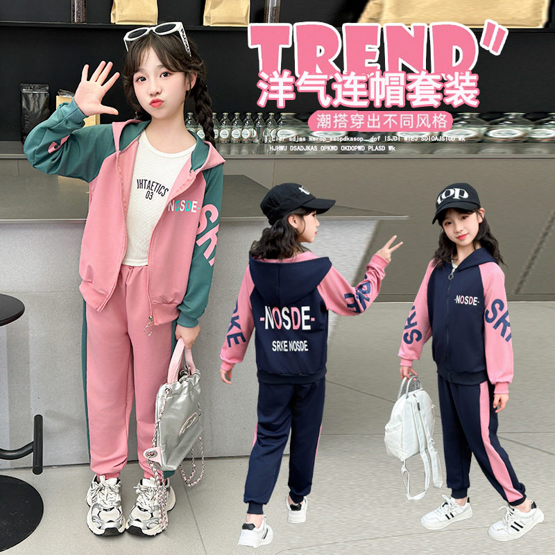 女童运动套装春秋2025新款中大童休闲长袖卫衣女孩洋气时髦两件套
