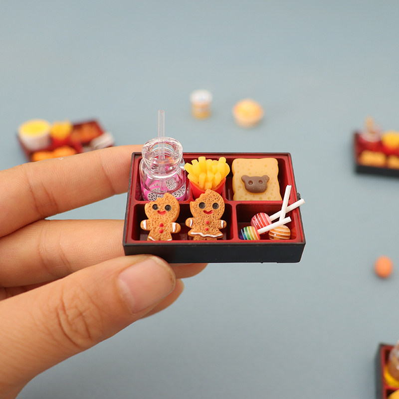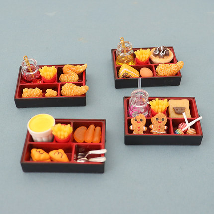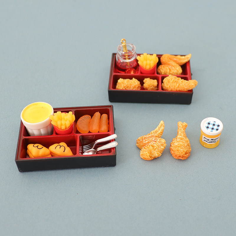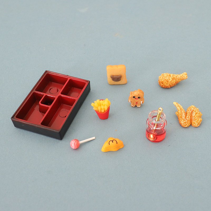 微缩食玩餐盘便当迷你快餐鸡翅薯条果酱娃娃屋配件过家家场景模型