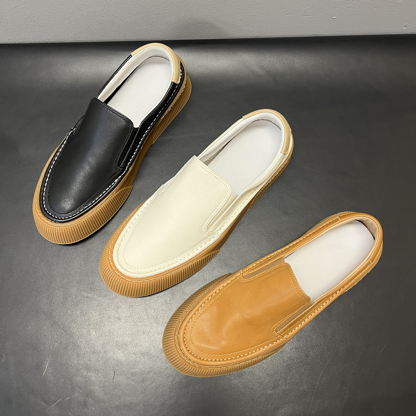 夏季新款乐福鞋男真皮透气小白鞋休闲鞋懒人鞋一脚蹬头层牛皮男鞋