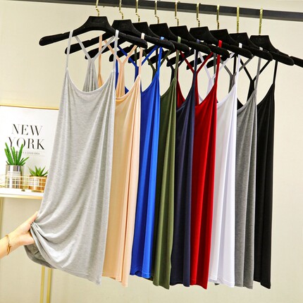 夏季薄款莫代尔中长裙Y字美背吊带裙百搭女打底衫修身背心裙大码