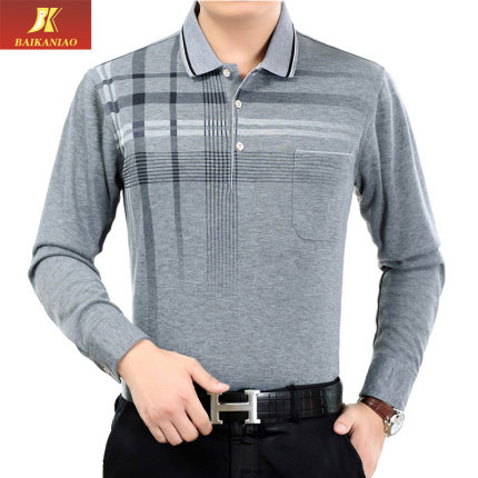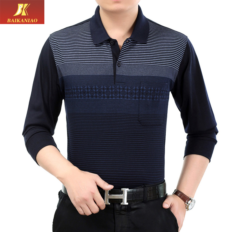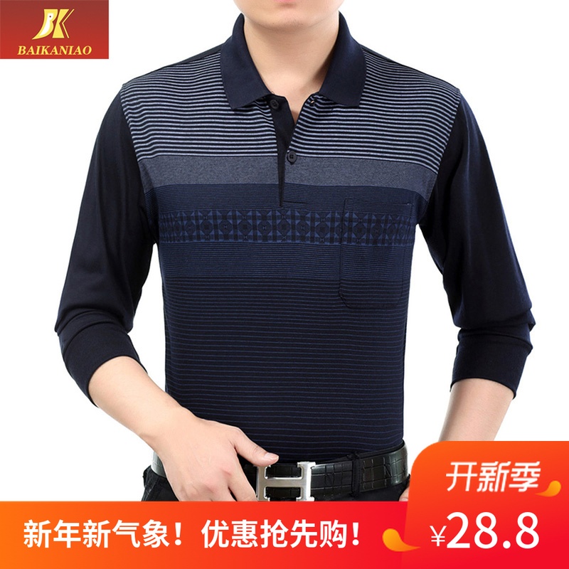 2021春季新款 中年男士长袖t恤 薄款翻领中老年人爸爸装 父亲男装