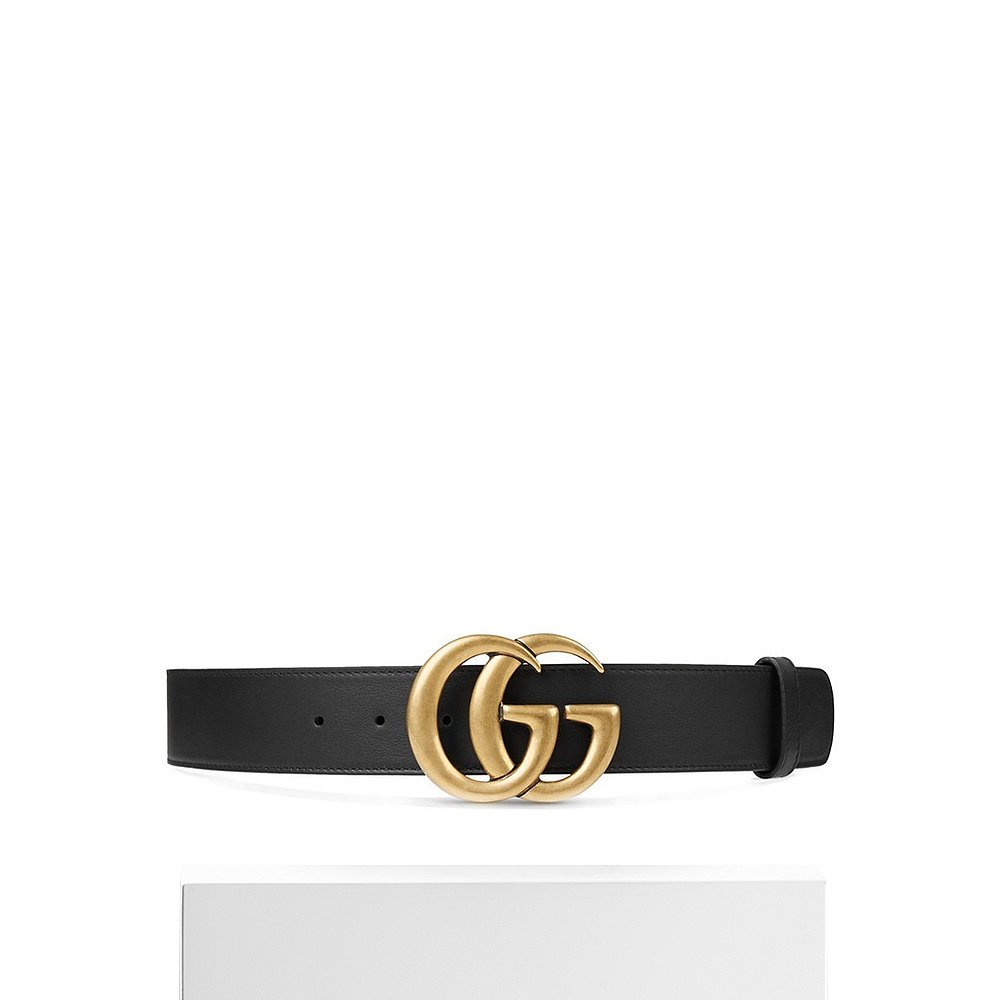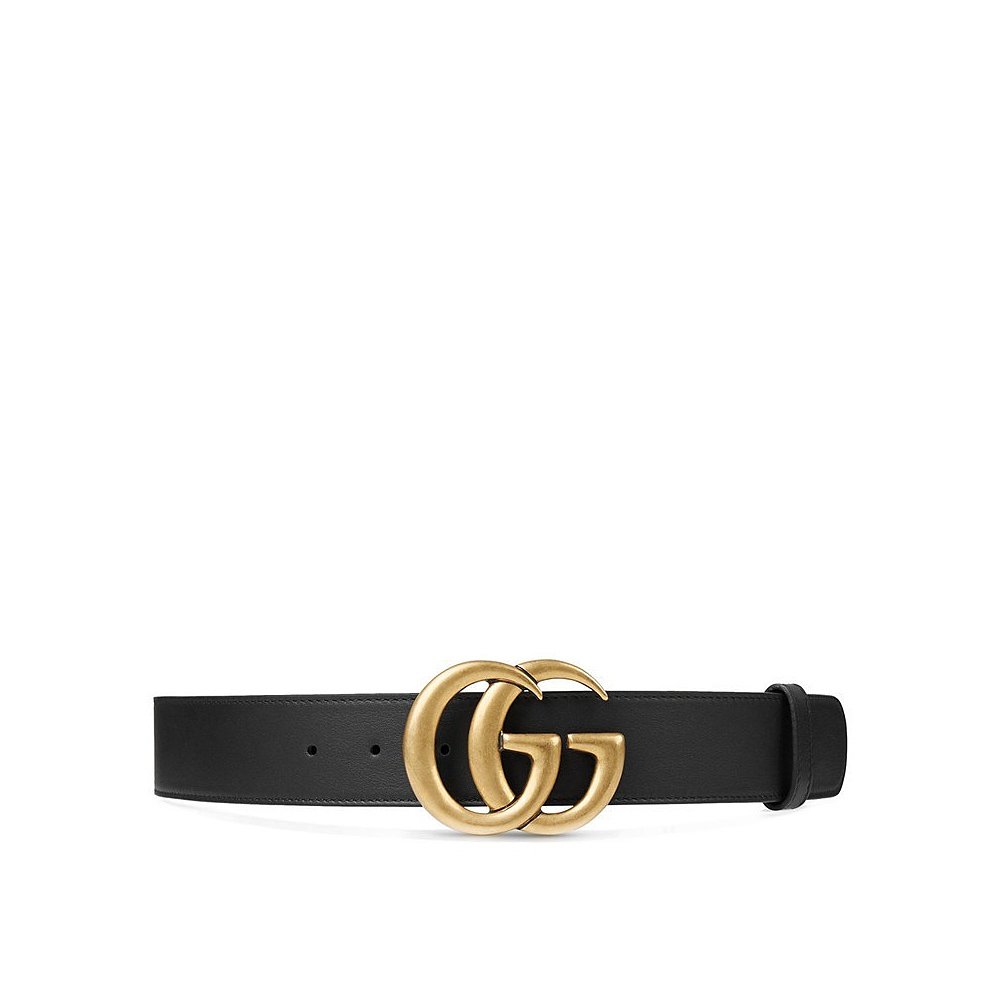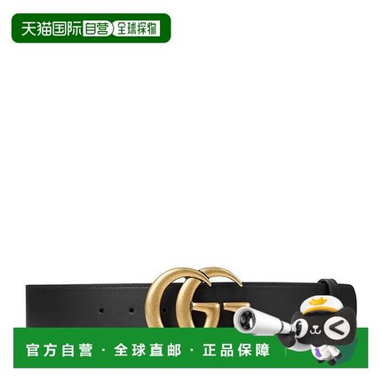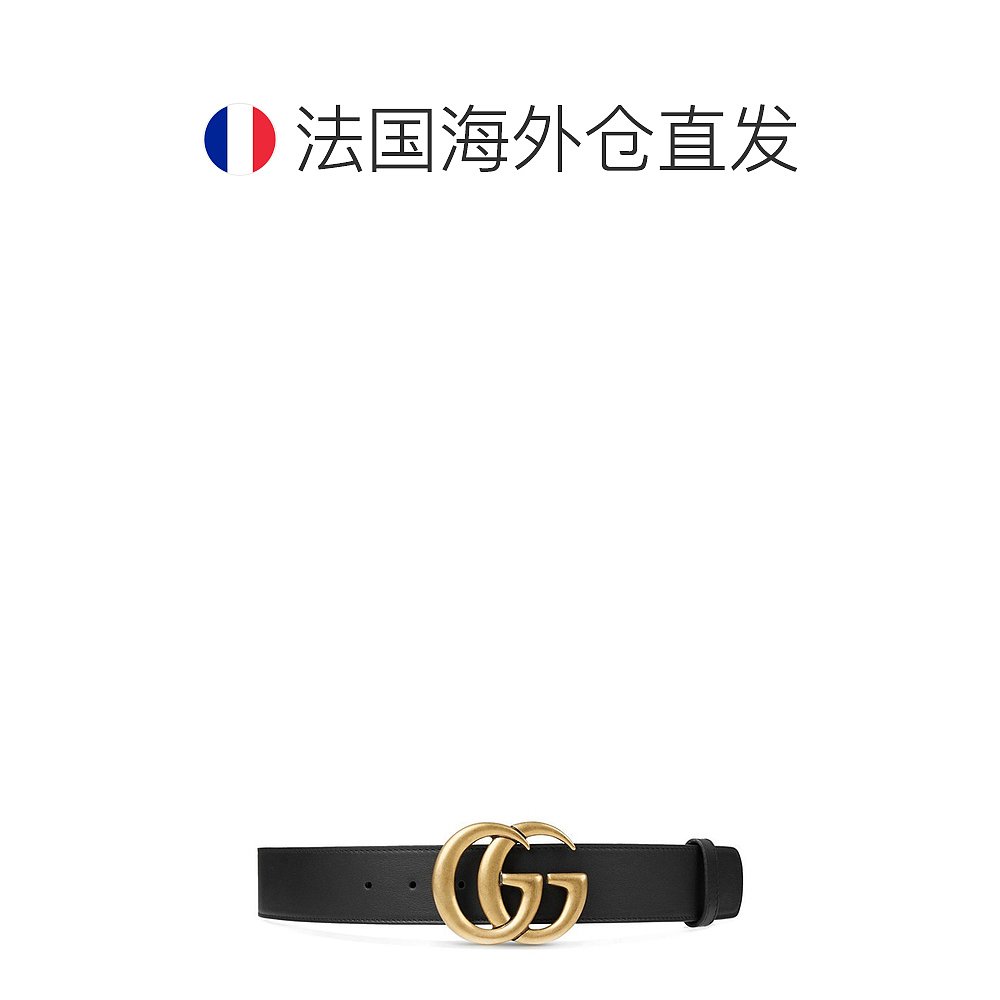 自营欧洲直邮GUCCI/古驰 经典款女士黑色皮革粗款金色双G扣腰带 4
