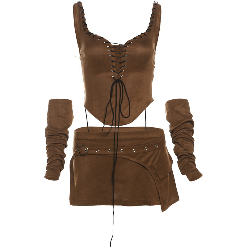 KLIOU 复古美拉德绑带显瘦不规则无袖背心小众不规则百搭半身裙女