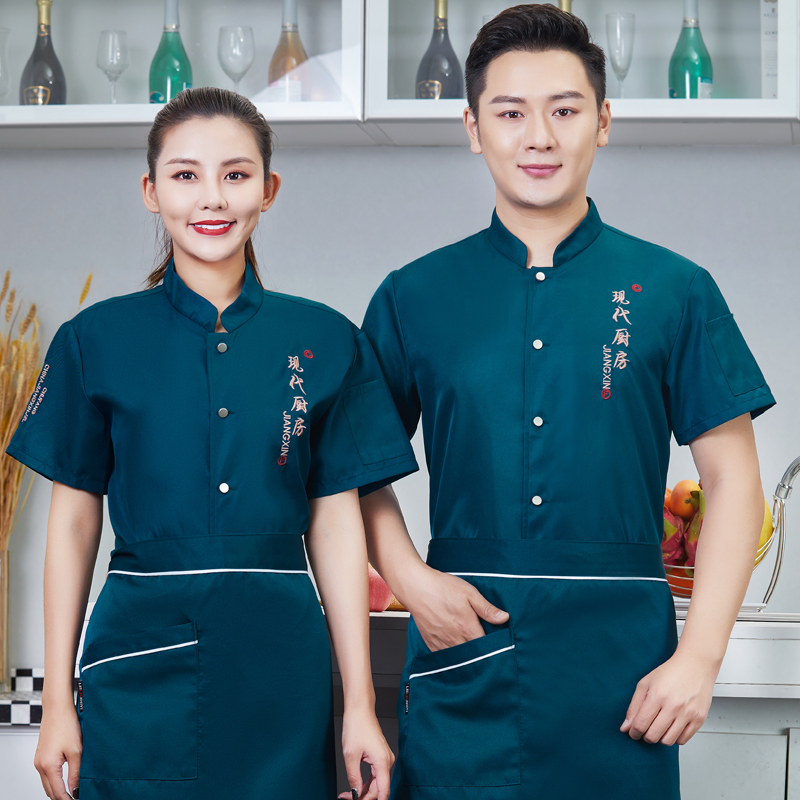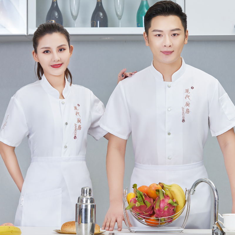 厨师工作服男短袖春夏装饭店厨师服女餐饮厨房工服酒店定制logo