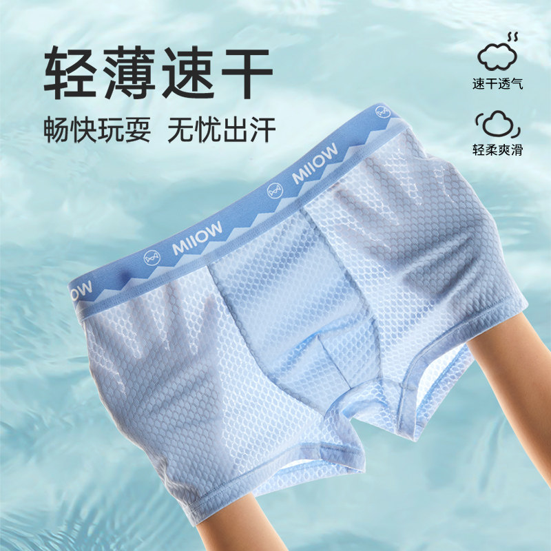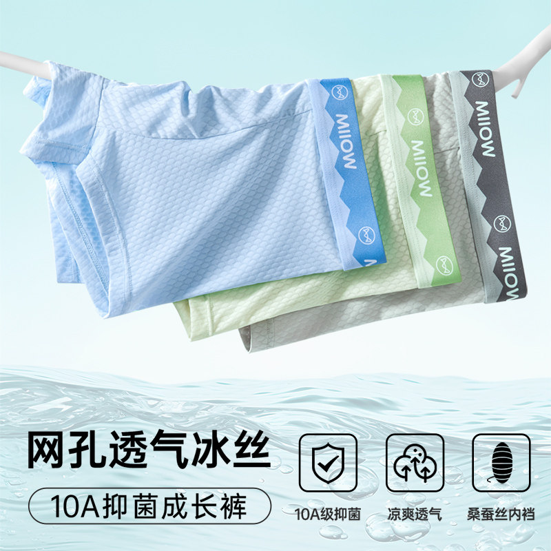 猫人青少年内裤抗菌儿童男童初高中生短裤发育期网孔透气冰丝内裤