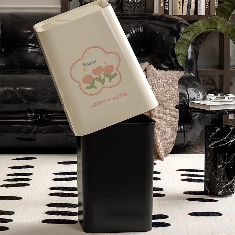 2025新款网红高档品质家用纸篓客厅卧室厨房卫生间创意印花垃圾桶