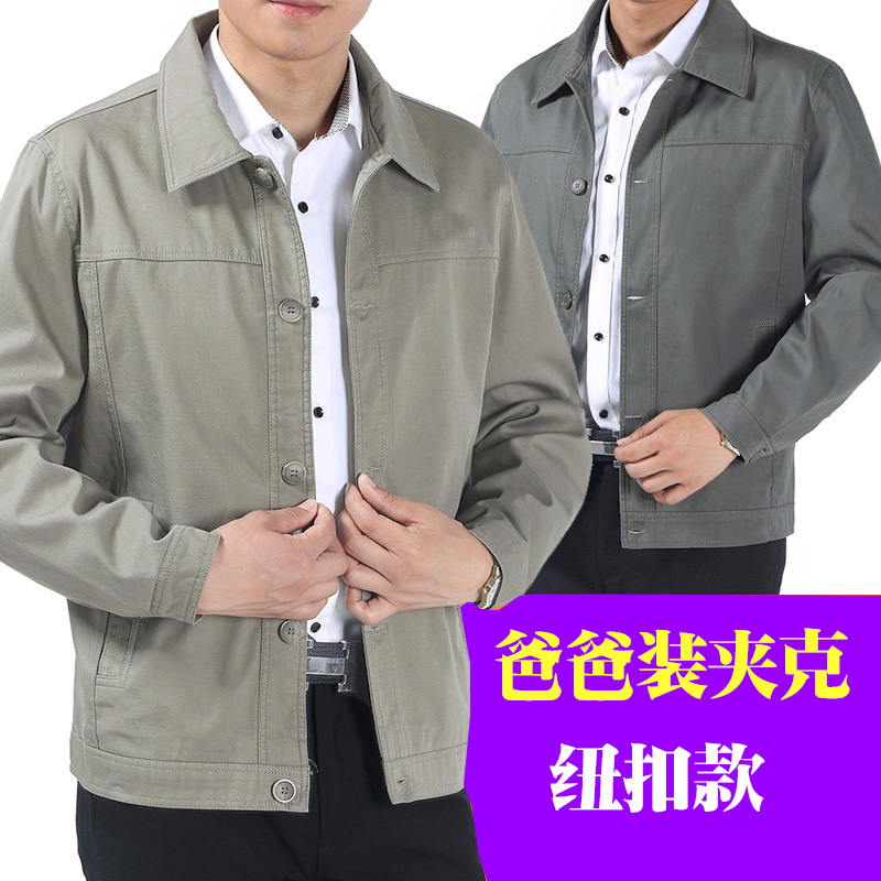 爸爸装外套男宽松中老年男士棉夹克春秋季老人纽扣爷爷装上衣服薄