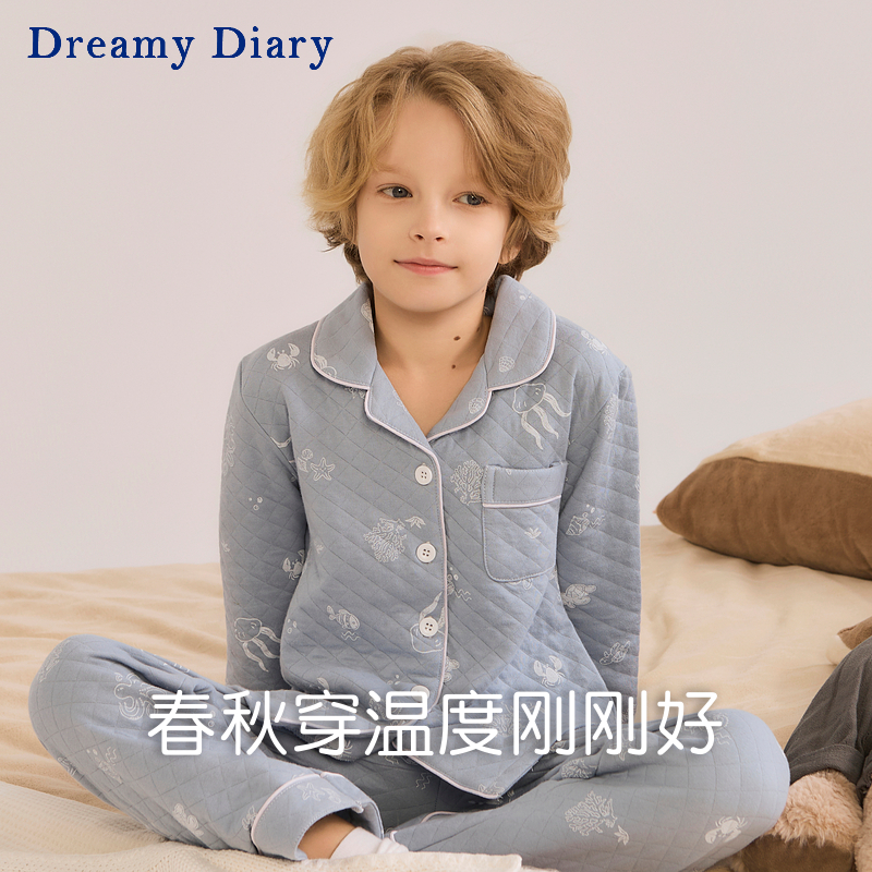 儿童家居服秋季新款空气棉男童睡衣加厚长袖长裤男孩秋冬保暖套装