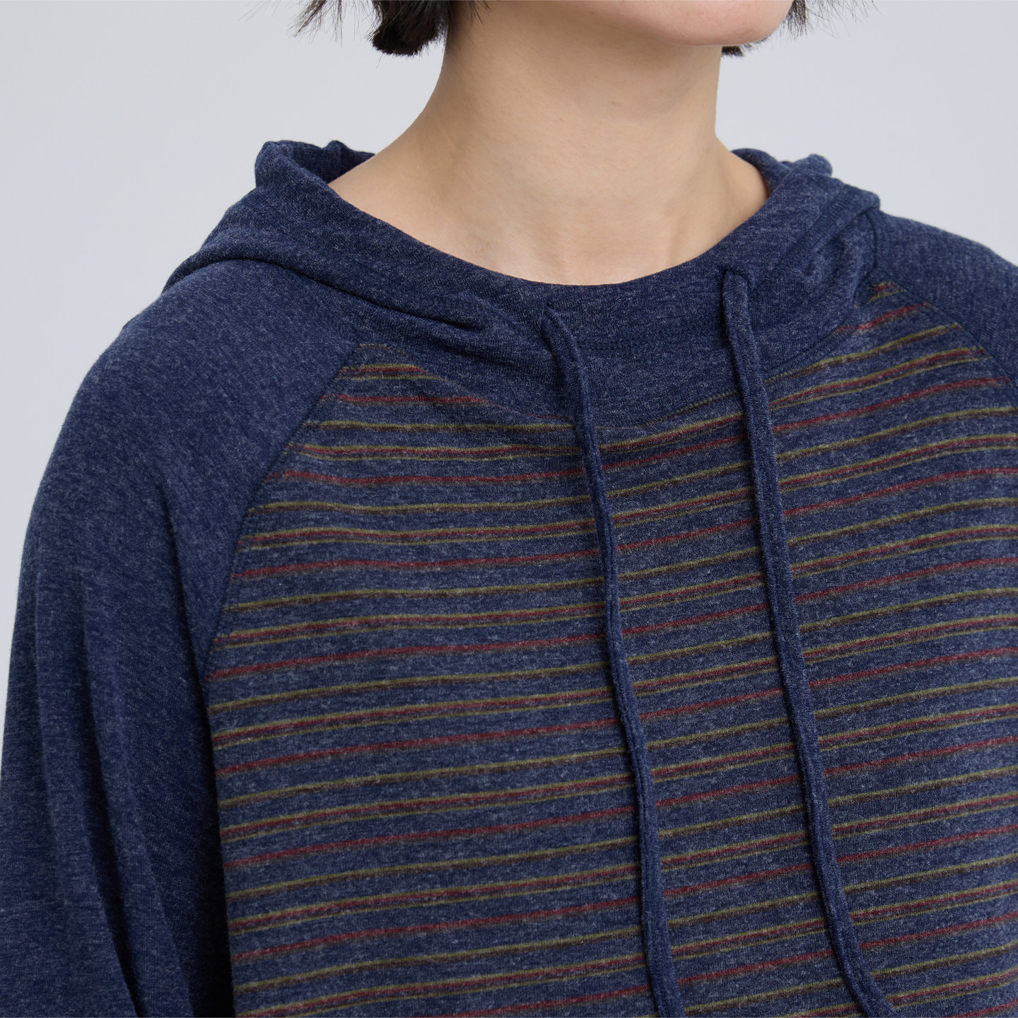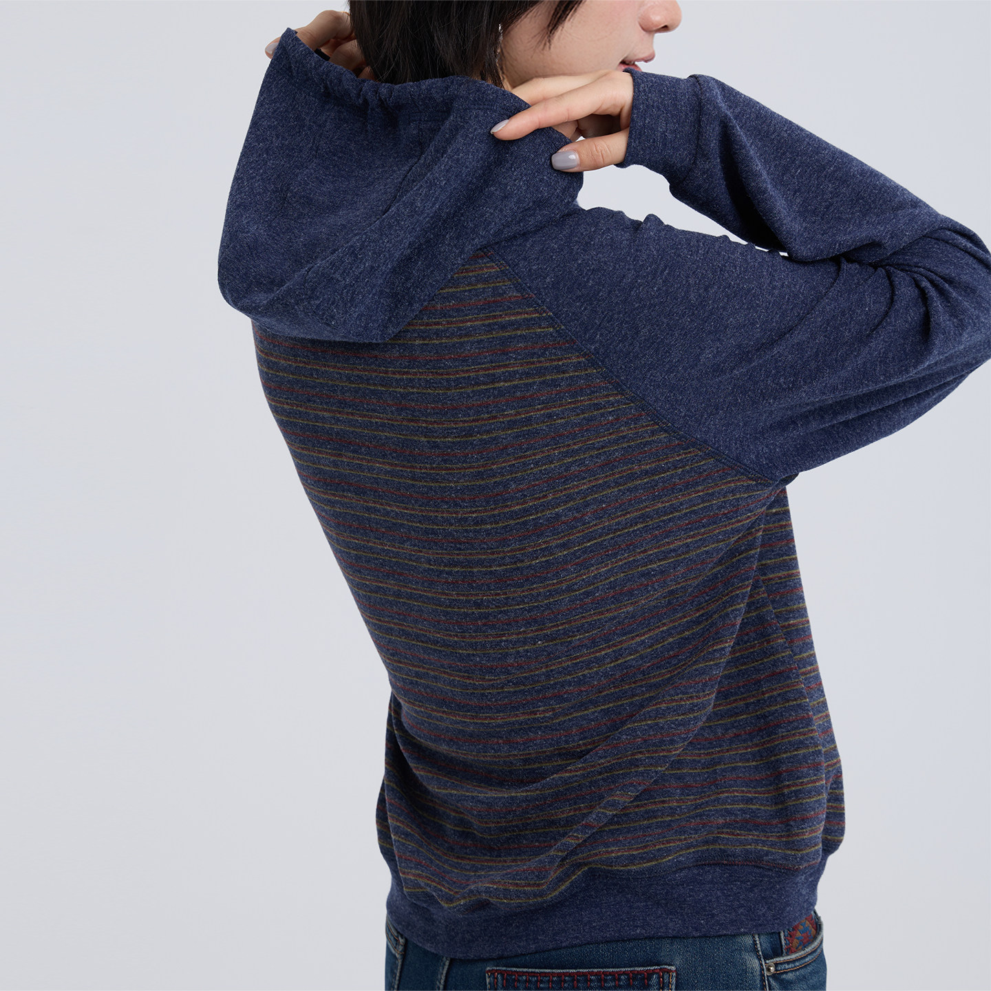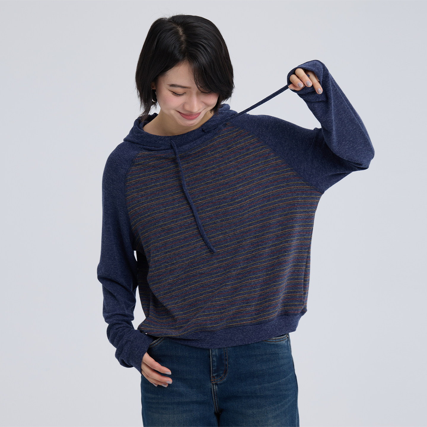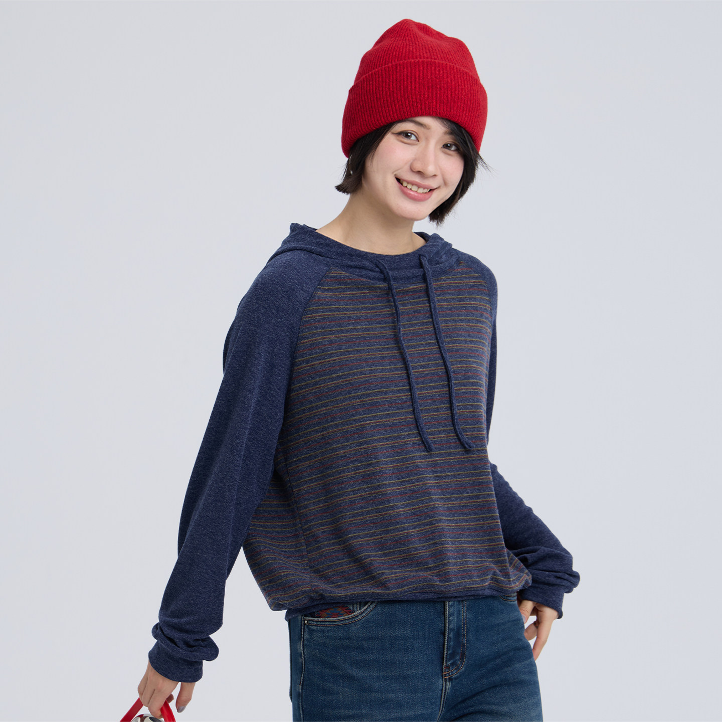 无色无味新款女士羊毛衫冬季打底针织衫时尚条纹遮肚毛衣连帽上衣