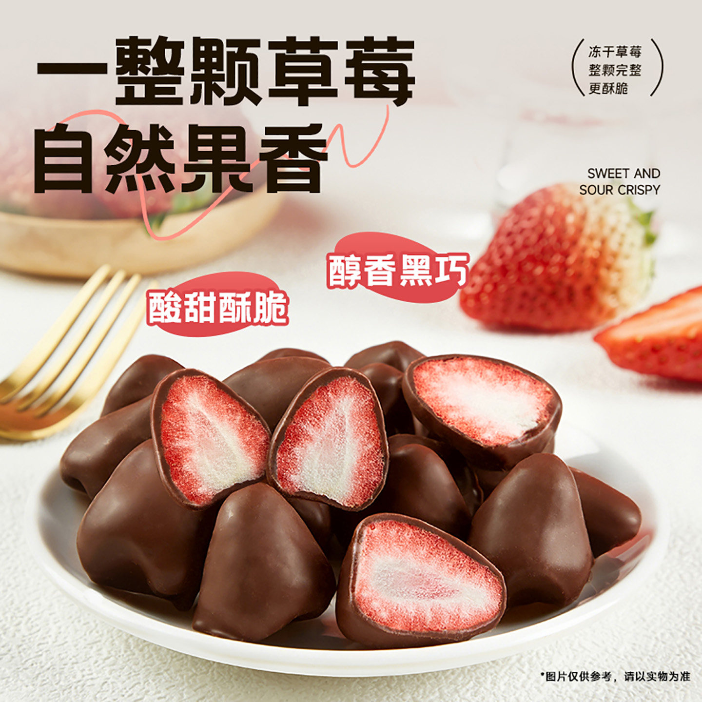 黑巧克力夹心冻干草莓一整颗纯可可脂办公室解馋小零食送女生礼物