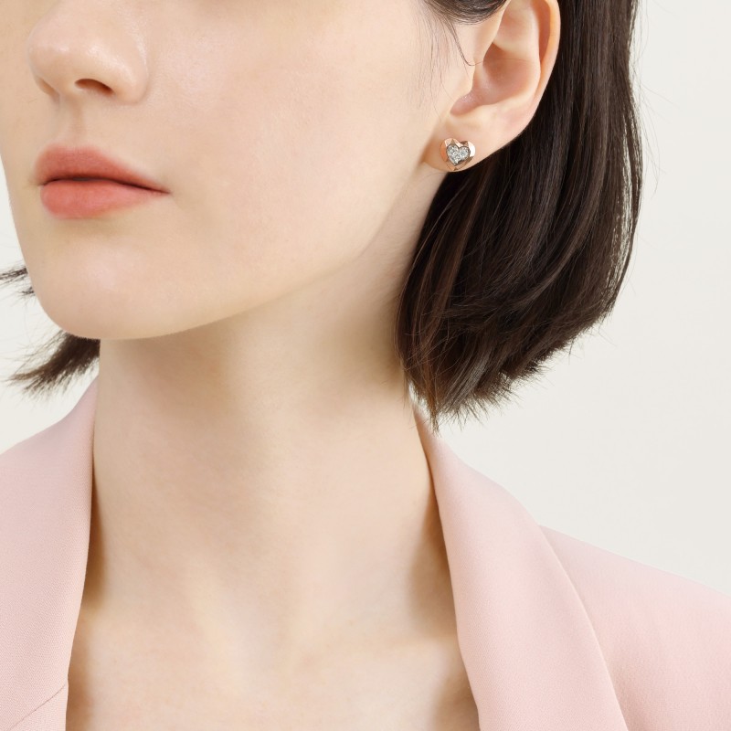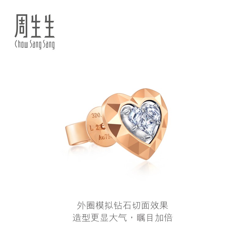 周生生Lady Heart钻石耳钉18K分色黄金耳饰单只93364E