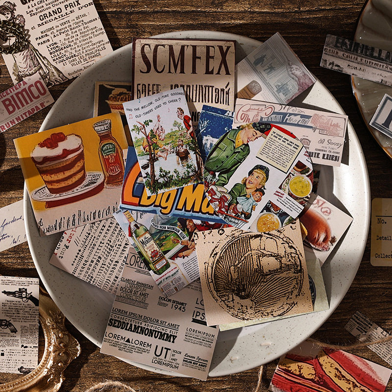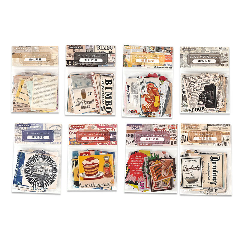 复古美式文艺英文报纸标签贴纸包高颜值ins风儿童DIY手帐日记打底素材拼贴装饰收集箱相册造景贴画封口贴50入