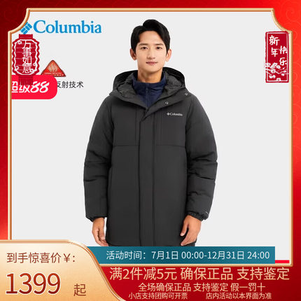 Columbia羽绒服男秋冬户外拒水热能加厚保暖连帽中长外套WE7624