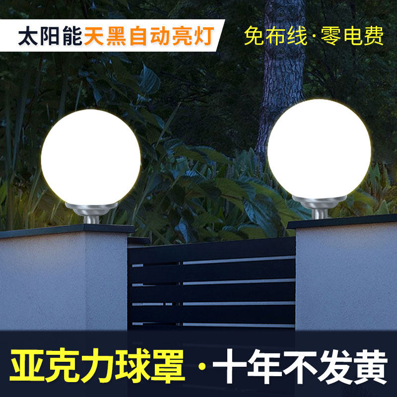 太阳能柱头灯圆球形户外大门庭院外E墙灯防水别墅柱子灯球型围墙
