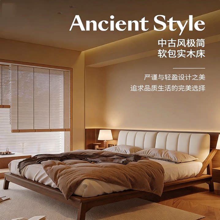 宋式美学实木双人床黑胡桃白蜡木卧室高端定制家具设计师同款婚床