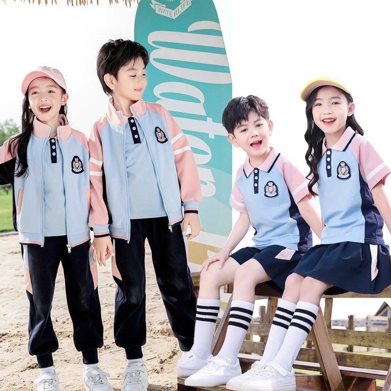 学院风粉蓝色校服套装小学生秋冬装新款男女童班服冲锋衣幼儿园服
