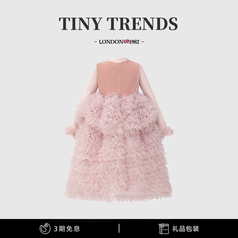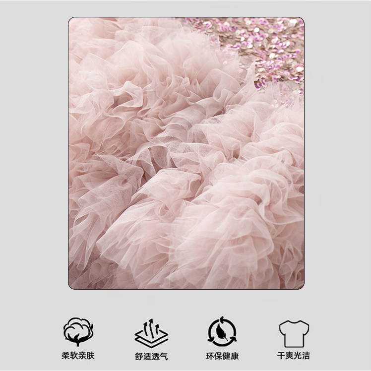 女童粉色连衣裙秋冬新款高级感儿童亮片蓬蓬公主裙小女孩生日礼服