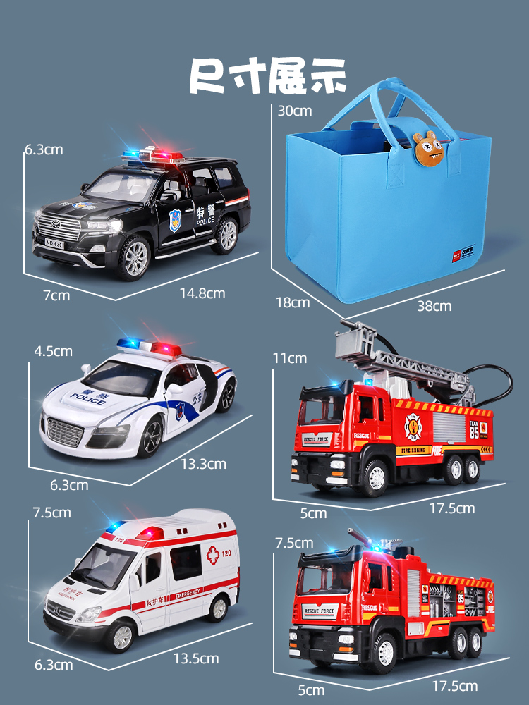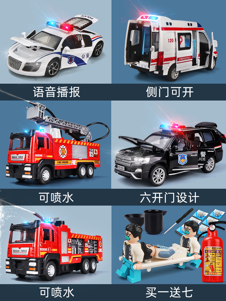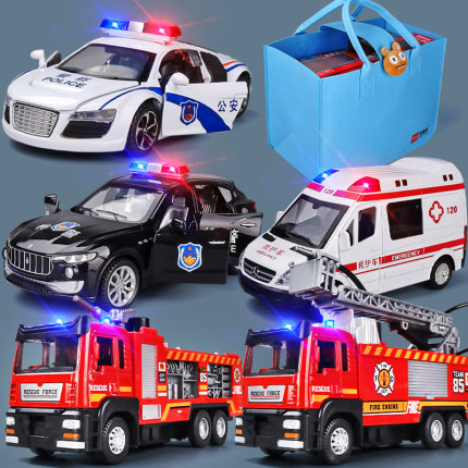卡威救护车儿童玩具车男孩消防车特警察车套装合金小汽车生日礼物