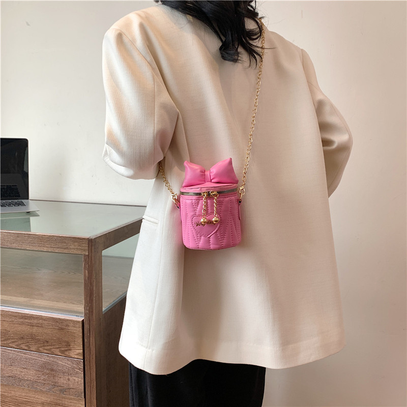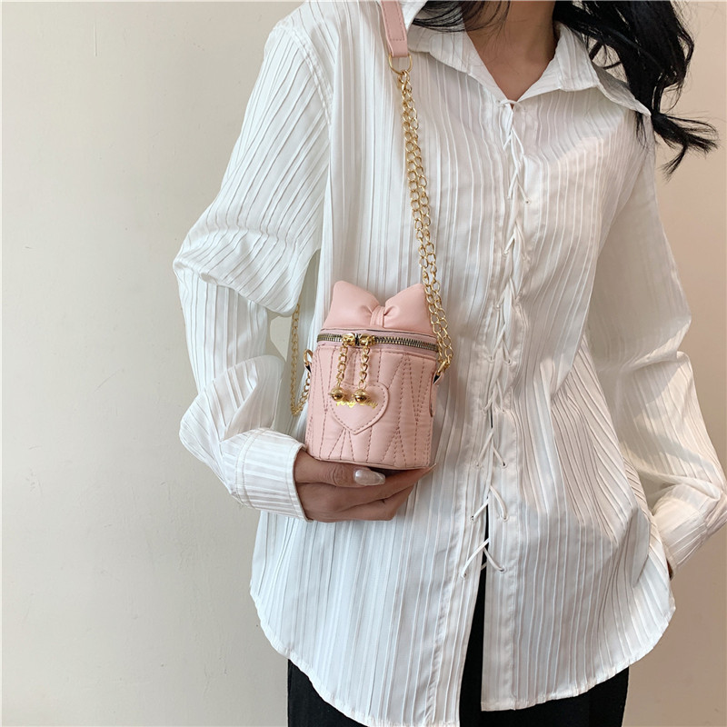 韩版小众设计时尚小包包女2024新款小香风菱格链条包迷你水桶包包