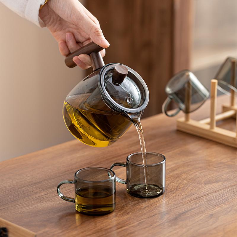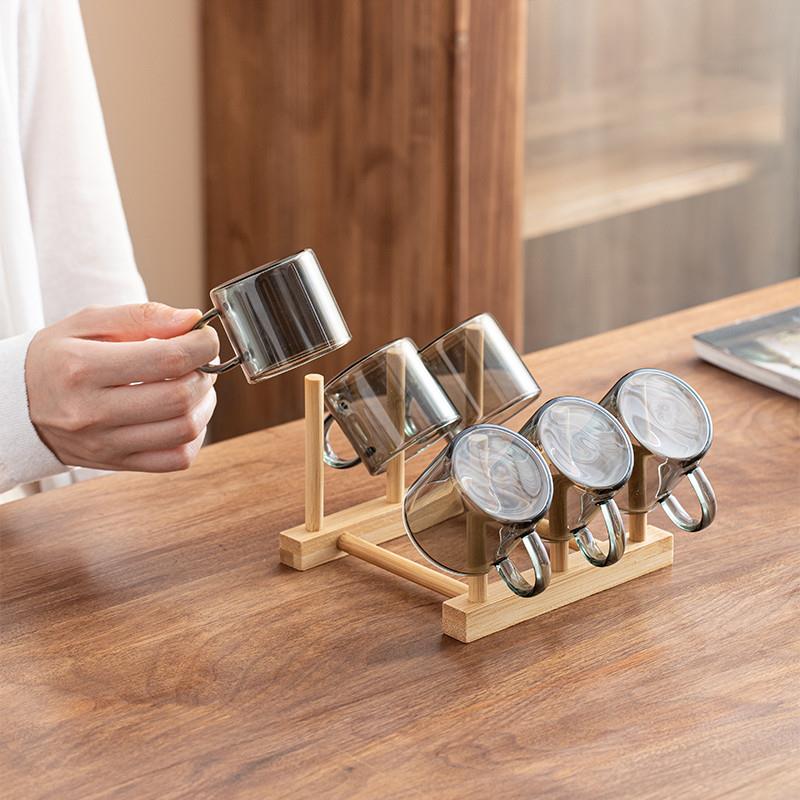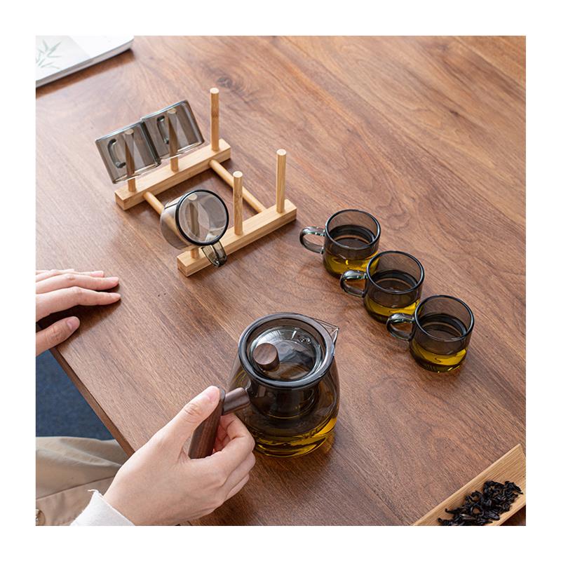 耐热玻璃小茶杯家用功夫茶具烟灰茶水杯架套装主人杯带把品茗杯子