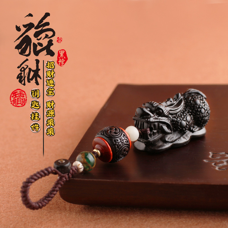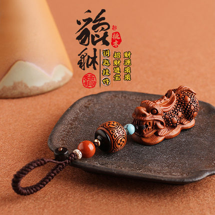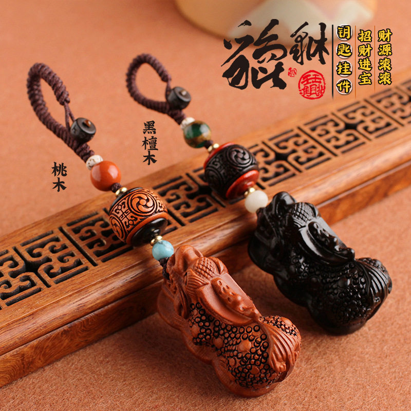 桃木貔貅汽车钥匙扣挂绳小叶紫檀
