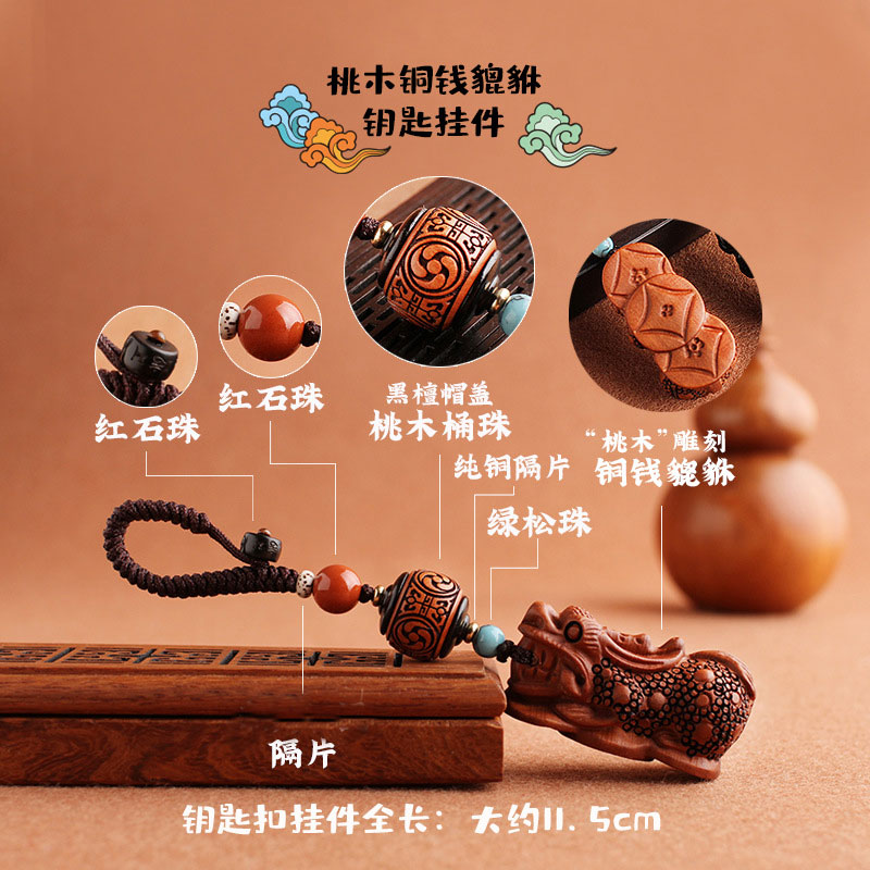 桃木貔貅汽车钥匙扣男钥匙挂件挂绳钥匙链女个性创意小叶紫檀挂饰