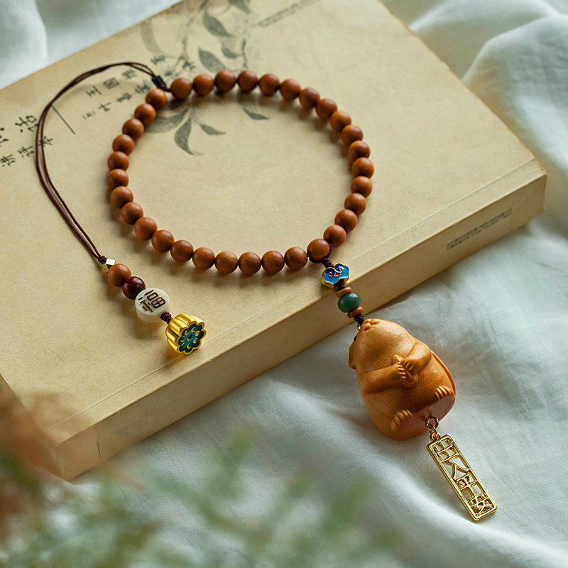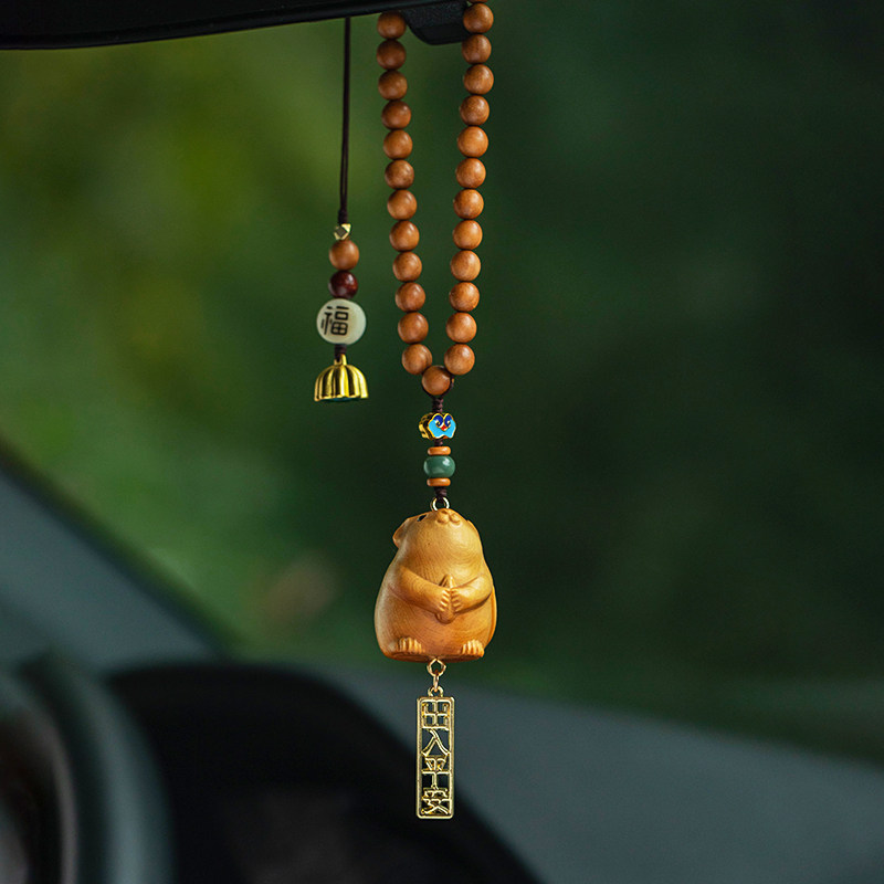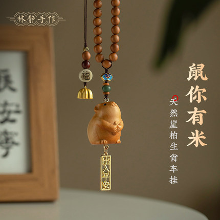 崖柏木雕可爱生肖鼠汽车挂饰十二生肖车载网红车内饰品后视镜挂件