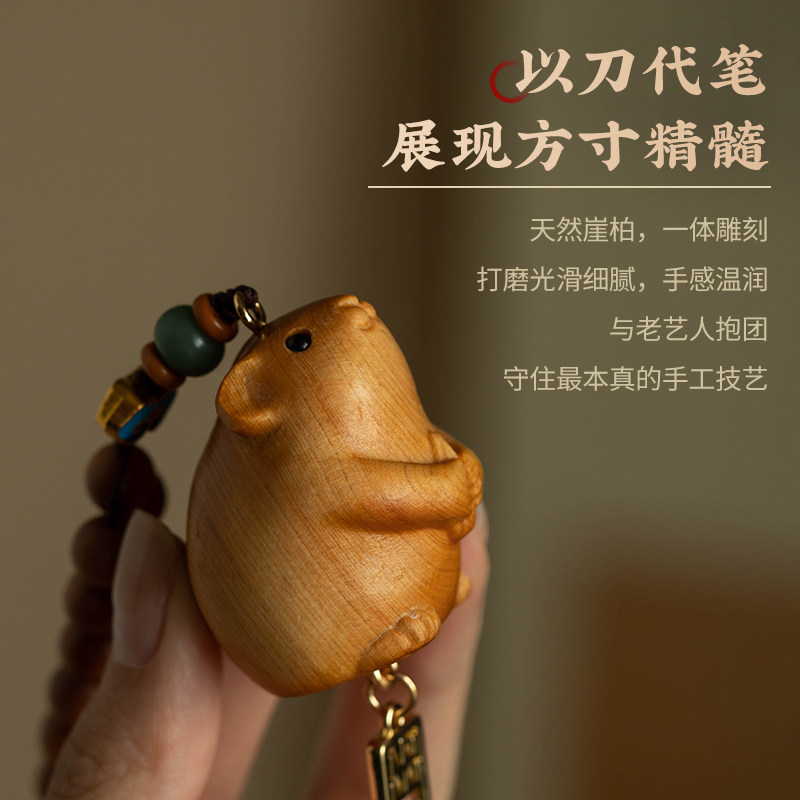 天然崖柏精雕生肖鼠汽车挂件