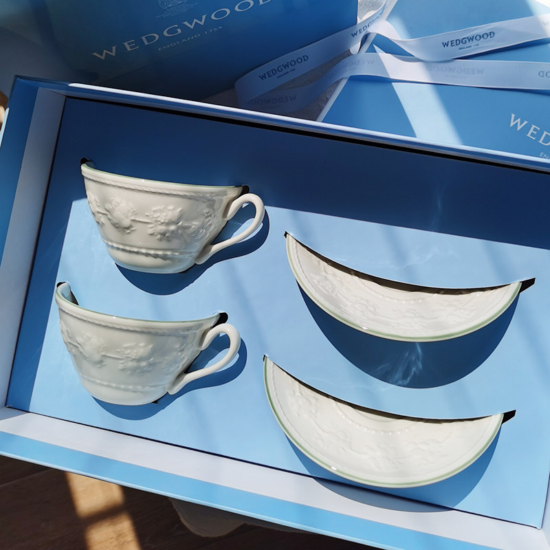 【结婚礼物】Wedgwood威基伍德欢愉假日树莓咖啡杯碟2杯2碟礼盒