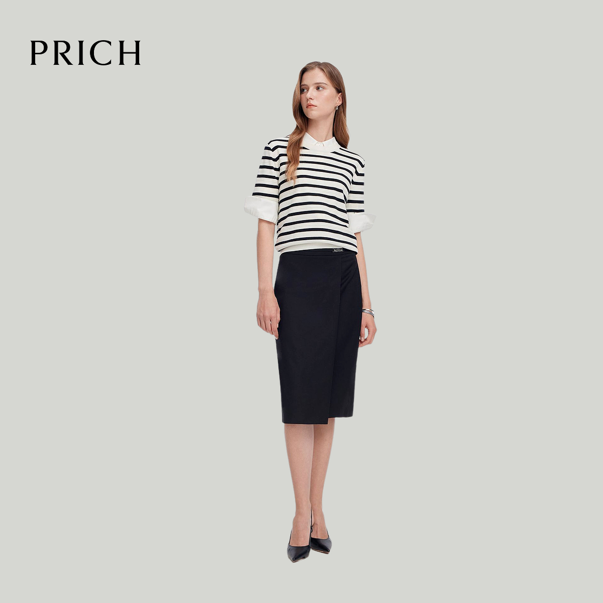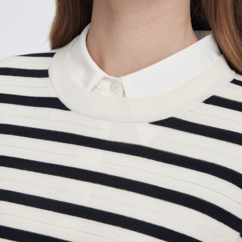 【可机洗美丽诺羊毛】PRICH时尚短袖针织衫2025春新款条纹上衣女