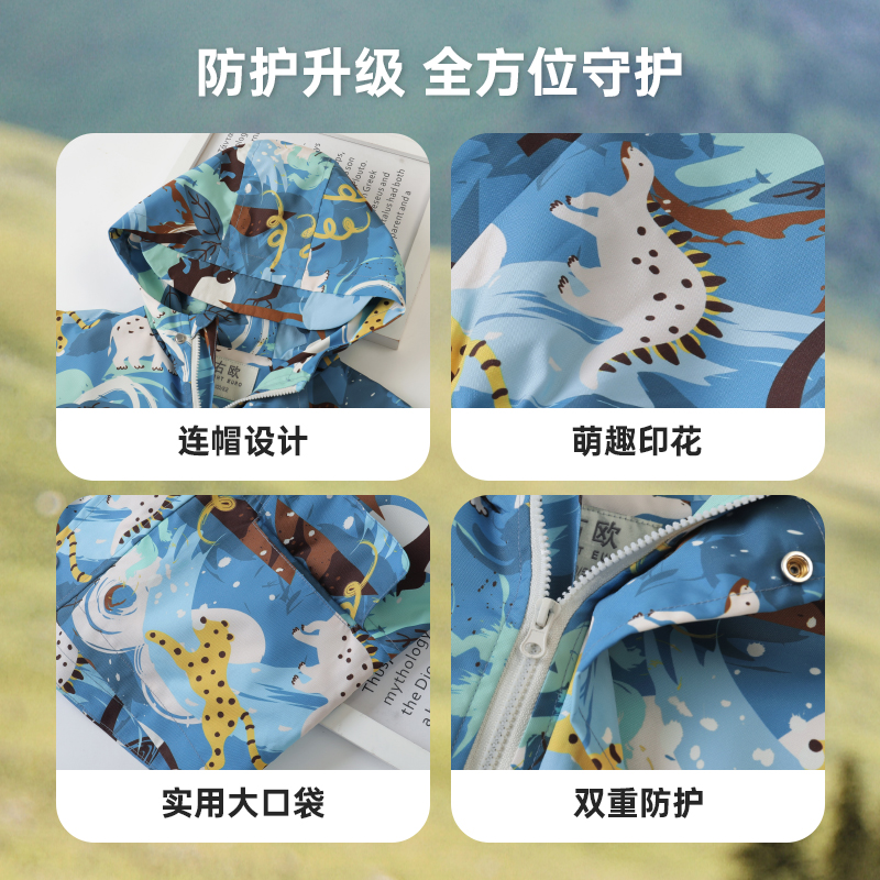 右欧女童外套男童春秋新款仿冲锋衣户外防水防风满印童装儿童衣服