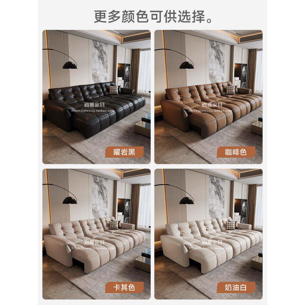 零壁挂式电动沙发床,智能伸缩多功能两用家庭影院客厅层真皮三座