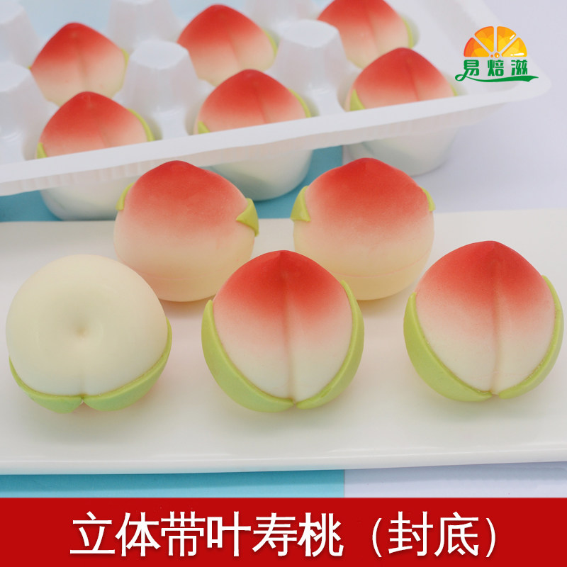 立体带叶寿桃 蛋糕装饰巧克力插片摆件 过寿礼品代可可脂烘焙配件