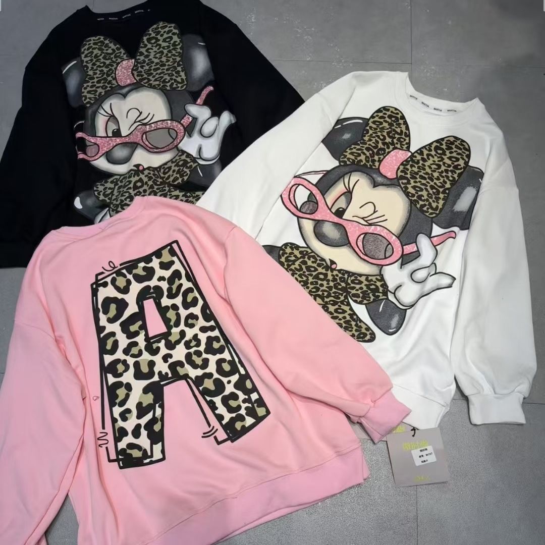 200斤大码秋冬潮流美式豹纹卡通米奇印花圆领卫衣女宽松显瘦上衣