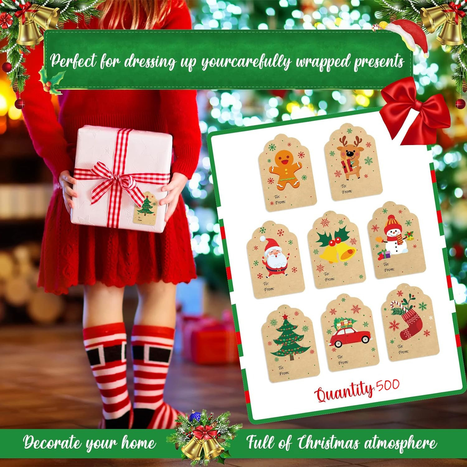 500张/卷圣诞节日To from贴纸装饰礼品空白牛皮纸手写标签不干胶