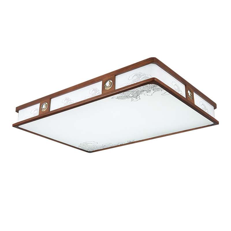 新中式客厅吸顶灯简约大气胡桃木色灯具创意实木长方形led卧室灯