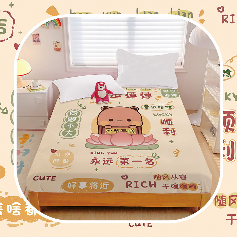 一二布布卡通全棉床笠床单单件2025新款纯棉情侣双人床垫保护罩女