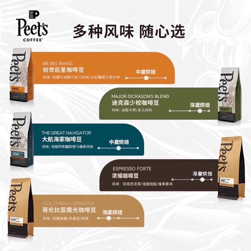 Peets皮爷大航海家咖啡豆经典多款阿拉比卡迪克森少校创世250g