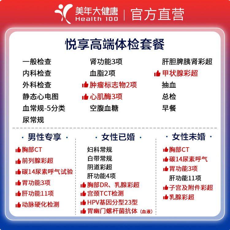 【抖音同款】美年大健康悦享高端体检套餐甲状腺中青老年女男全身