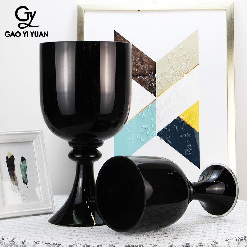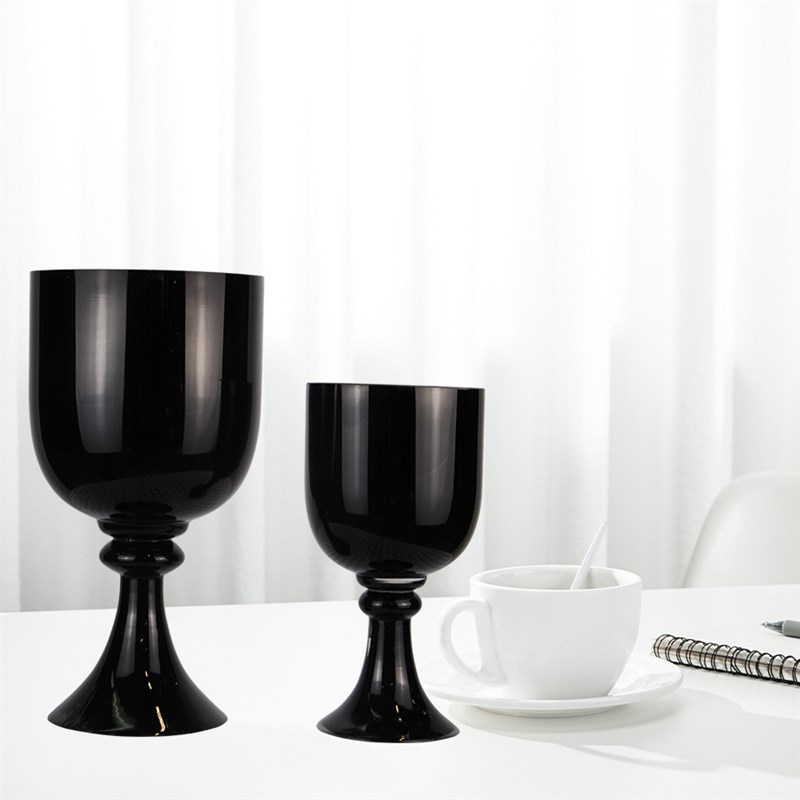 北欧风简约家居玄关桌面摆件装饰玻璃插花瓶黑色酒杯状花器
