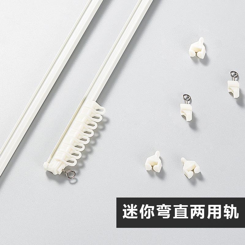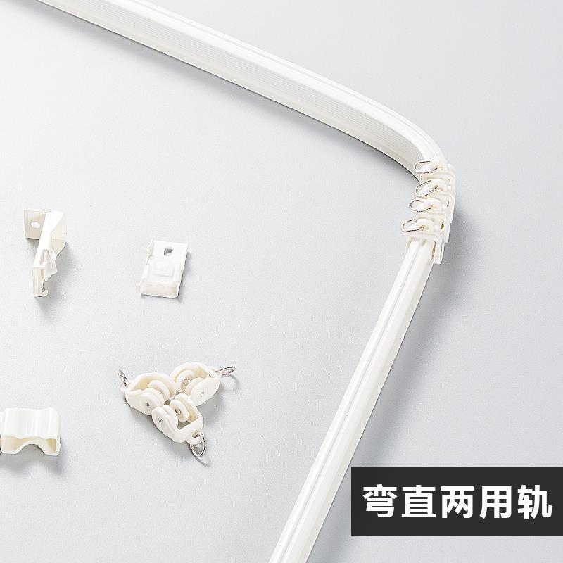加厚铝合金窗帘轨道静音窗帘杆白色单双轨滑轨滑轮导轨顶侧装挂钩
