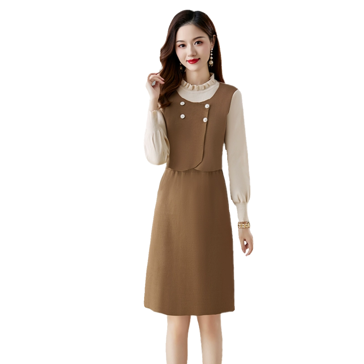 假两件羊绒打底毛衣裙女士2025新款秋冬季中长款羊毛针织连衣裙子