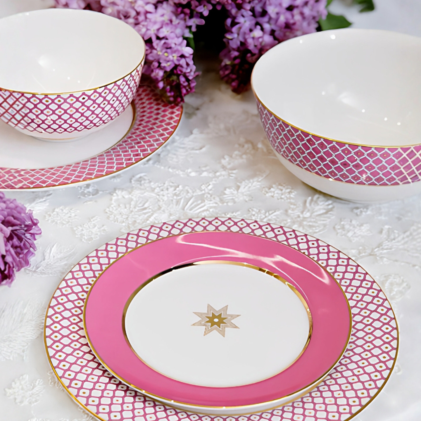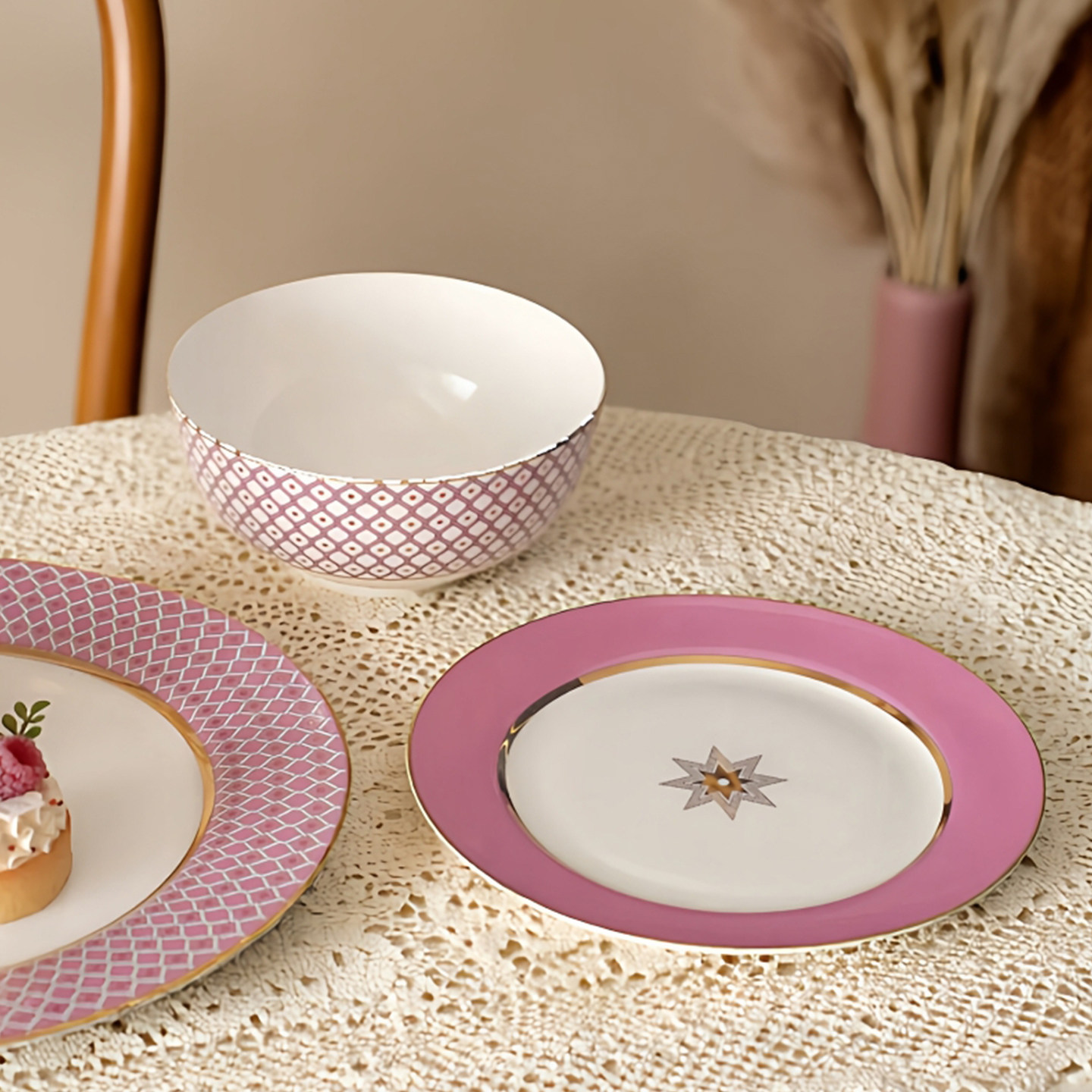 LunTime生活漂亮撞色好看骨瓷盘子家用轻奢餐具套装水果盘西餐盘
