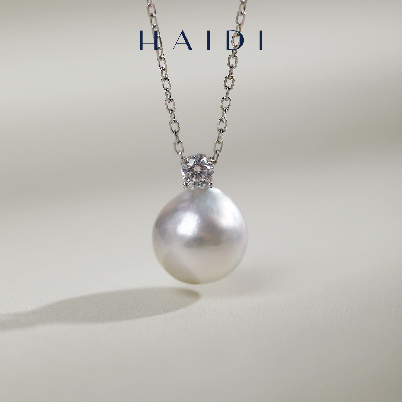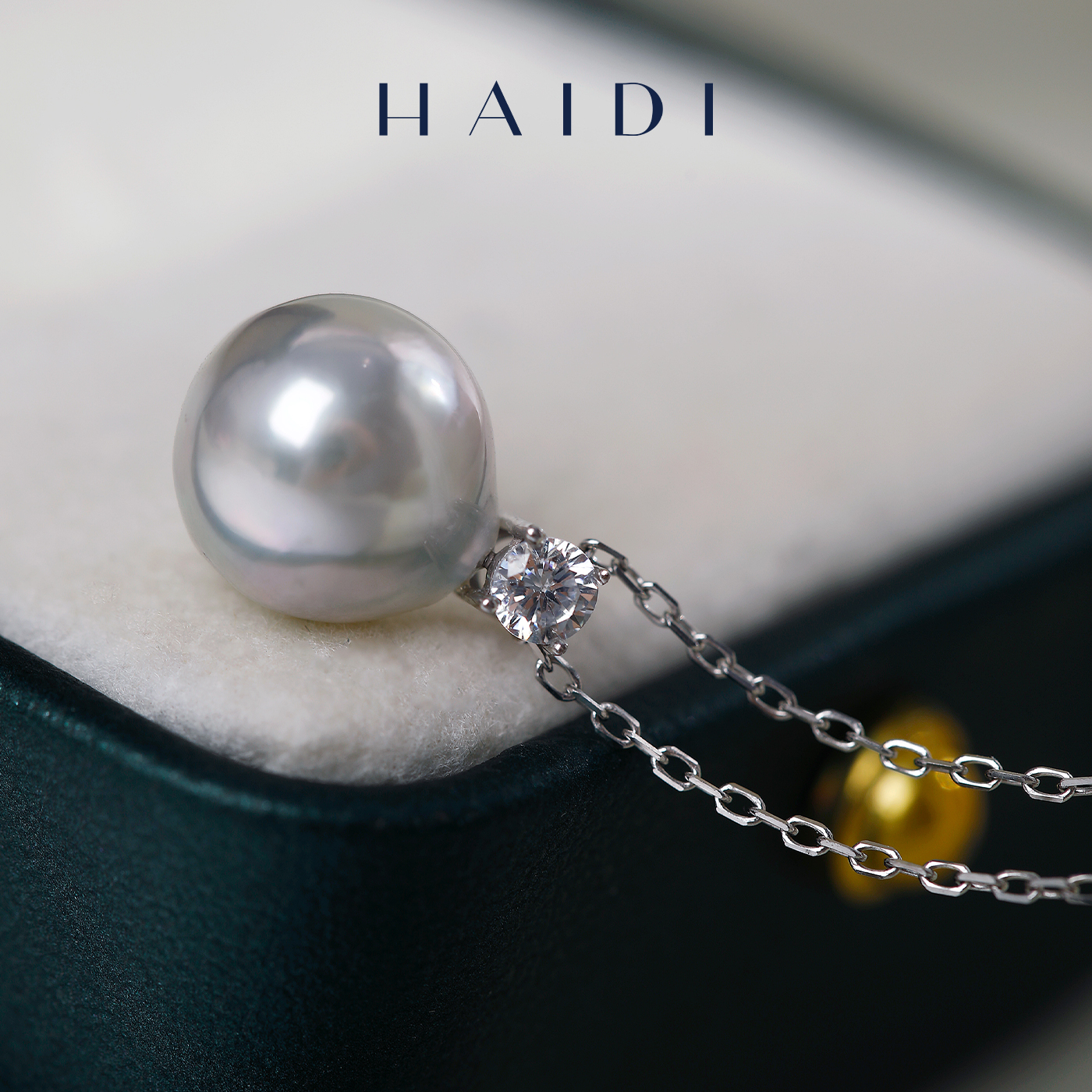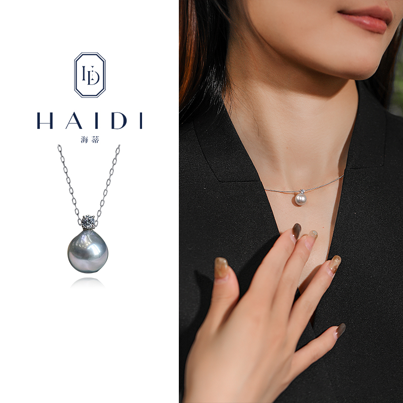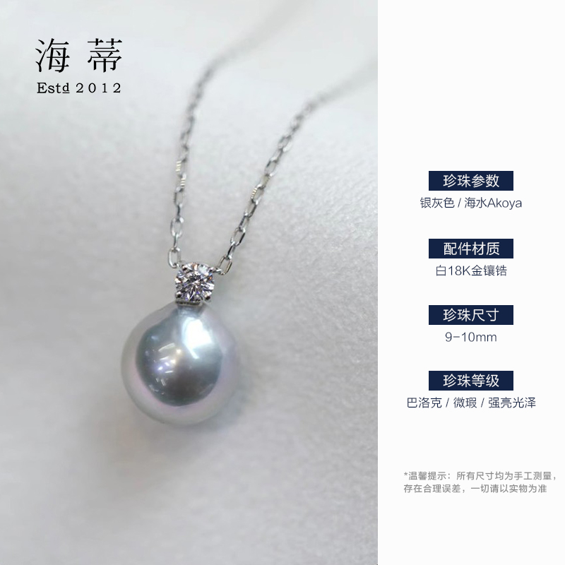 海蒂珠宝 异辉 9-10mm巴洛克Akoya银灰色海水珍珠吊坠18K金王妃款