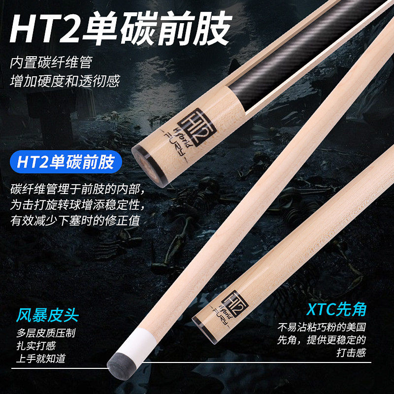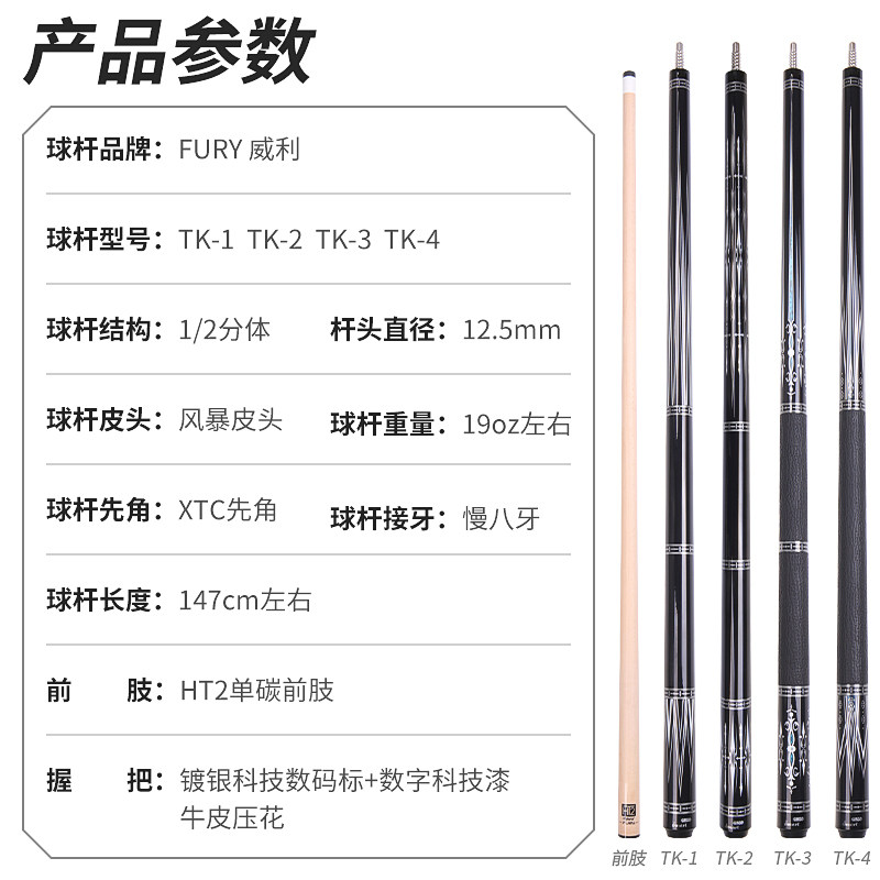 威利FURY新款TK坦克系列台球杆大头中式黑八12.5mm皮把碳管九球杆