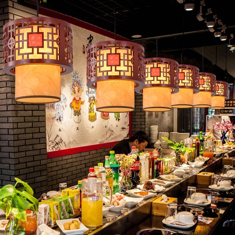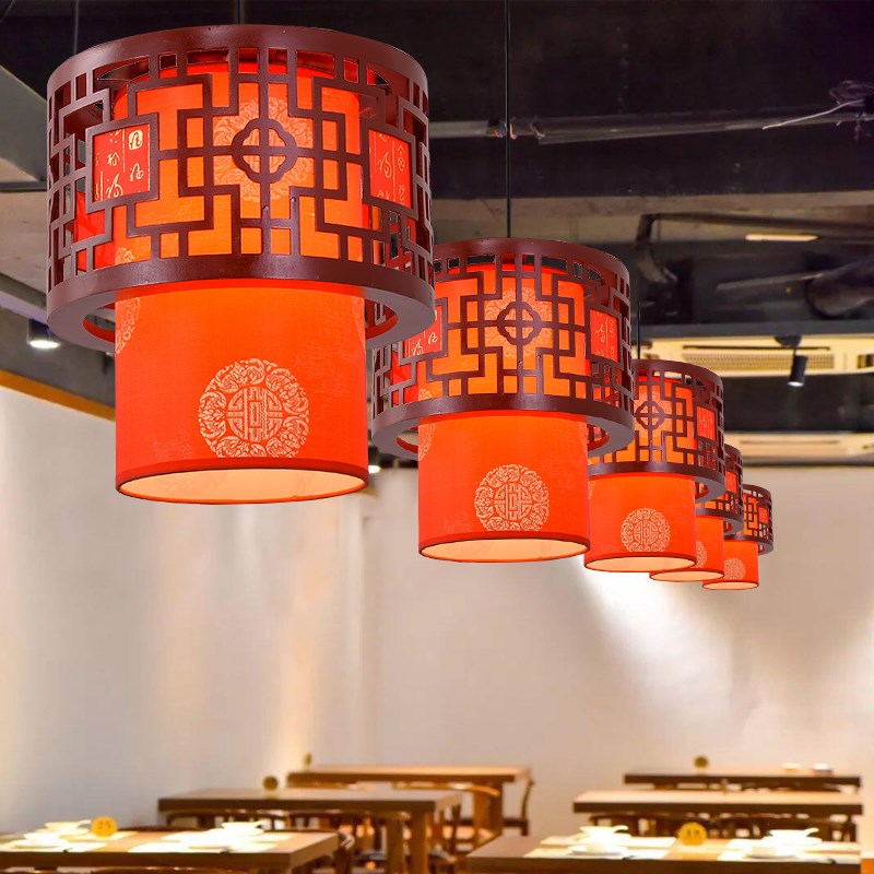 中式吊灯中国风仿古木艺饭店餐馆中餐厅走廊酒店门厅红灯笼小吊灯