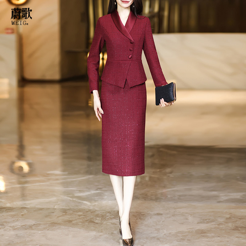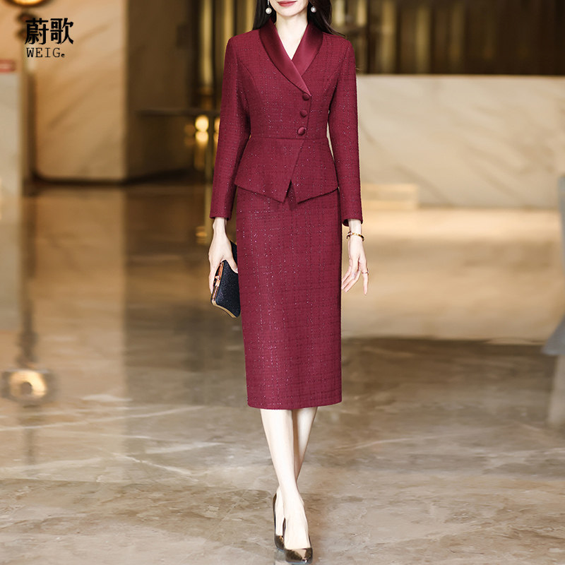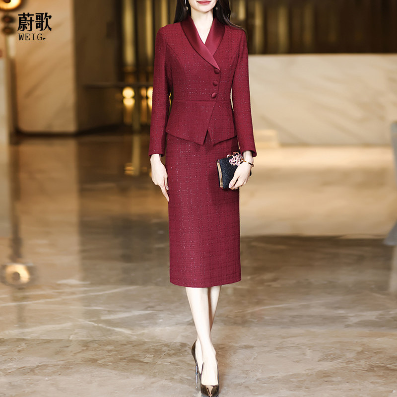 喜婆婆婚宴装2025秋冬新款时尚修身显瘦小香风假两件连衣裙一步裙