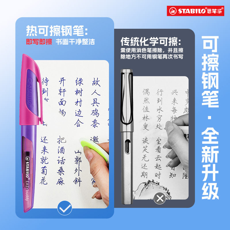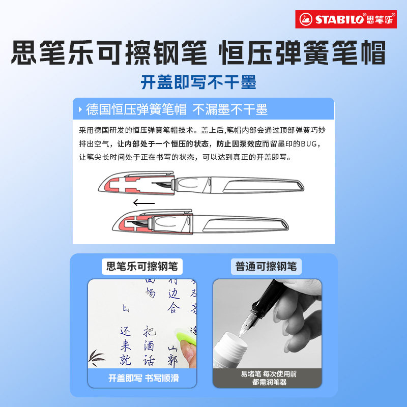 stabilo思笔乐德国热可擦钢笔小学生专用三四年级EF标准型铱金笔尖0.38mm墨胆更换不脏手矫正握笔姿势不累手