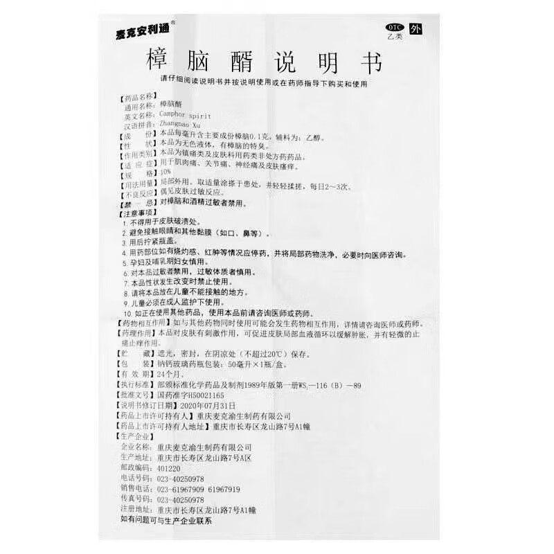 【麦克安利通】樟脑醑10%*50ml*1瓶/盒