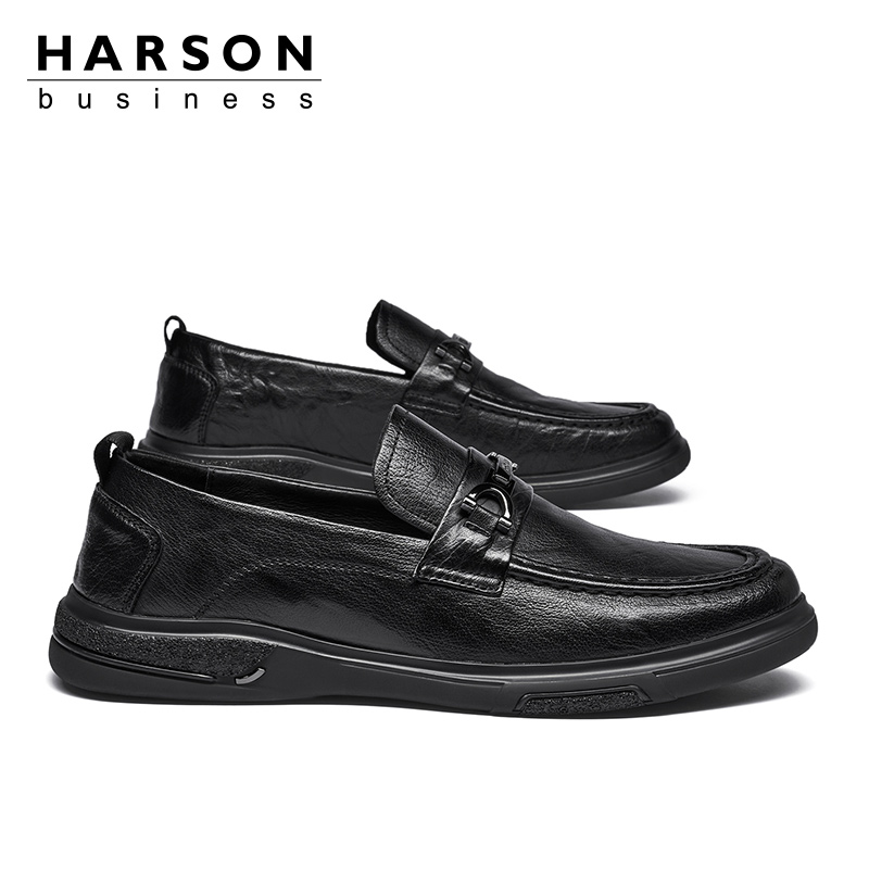 哈森男鞋豆豆鞋男休闲商务鞋一脚蹬懒人鞋软底乐福鞋休闲男士皮鞋